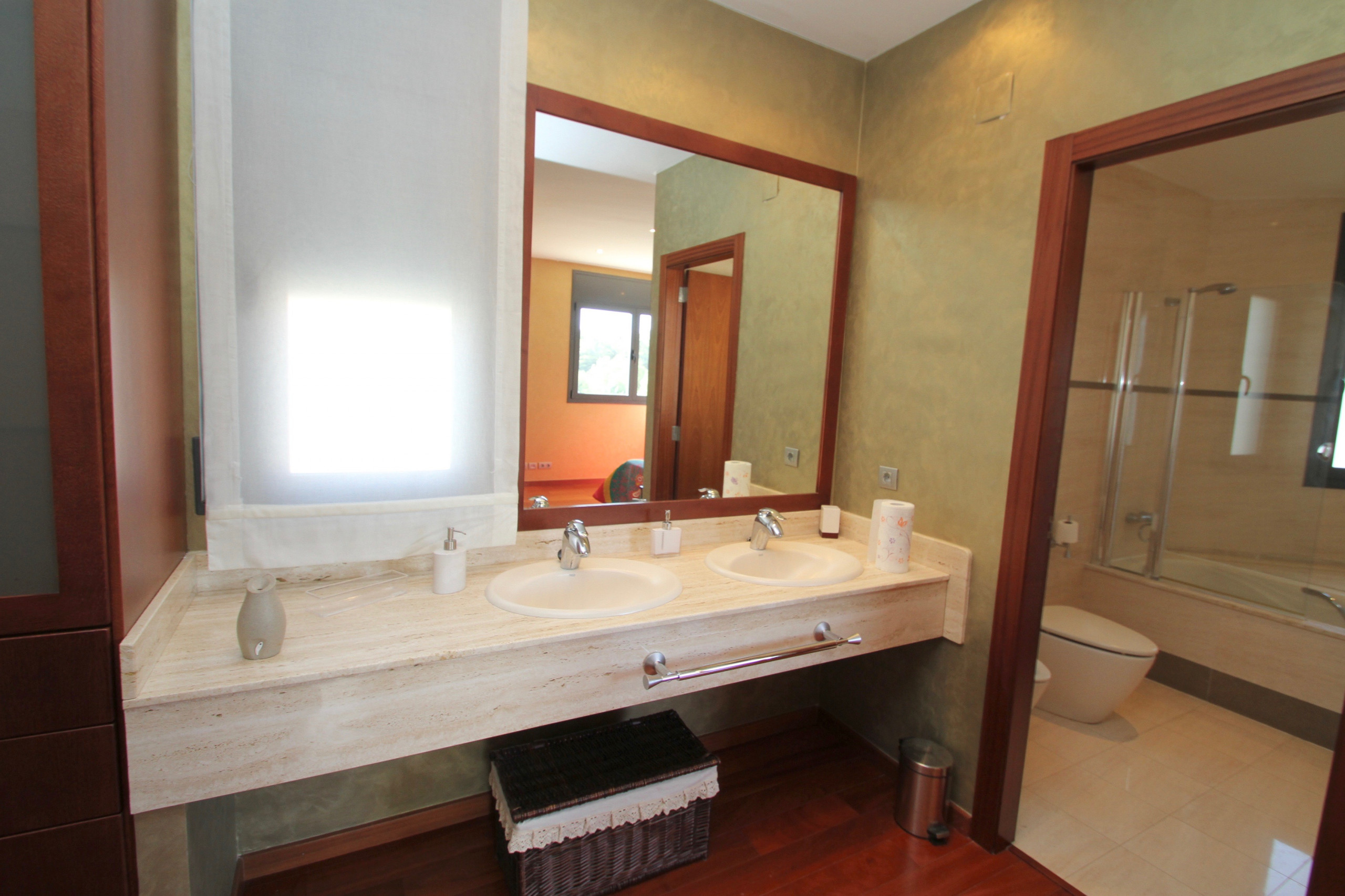Dormitorio-suite con vestidor y con una cama de matrimonio grande 180x200 y un baño con jacuzzi (pero el sistema de jacuzzi no funciona) y más una cama canguro (2 camas individuales de 80x190). Otro dormitorio con 2 camas individuales de 80x190 estilo Ferrari. Tercer dormitorio con una cama de matrimonio de 160x200. Hay otro baño en la misma planta con bañera.
